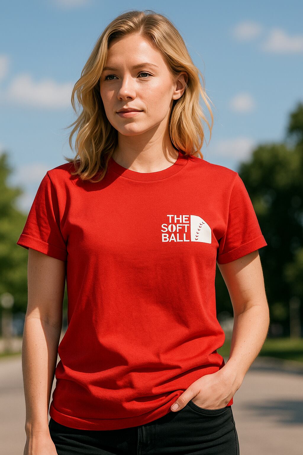 ソフトボールファンのための赤いTシャツ